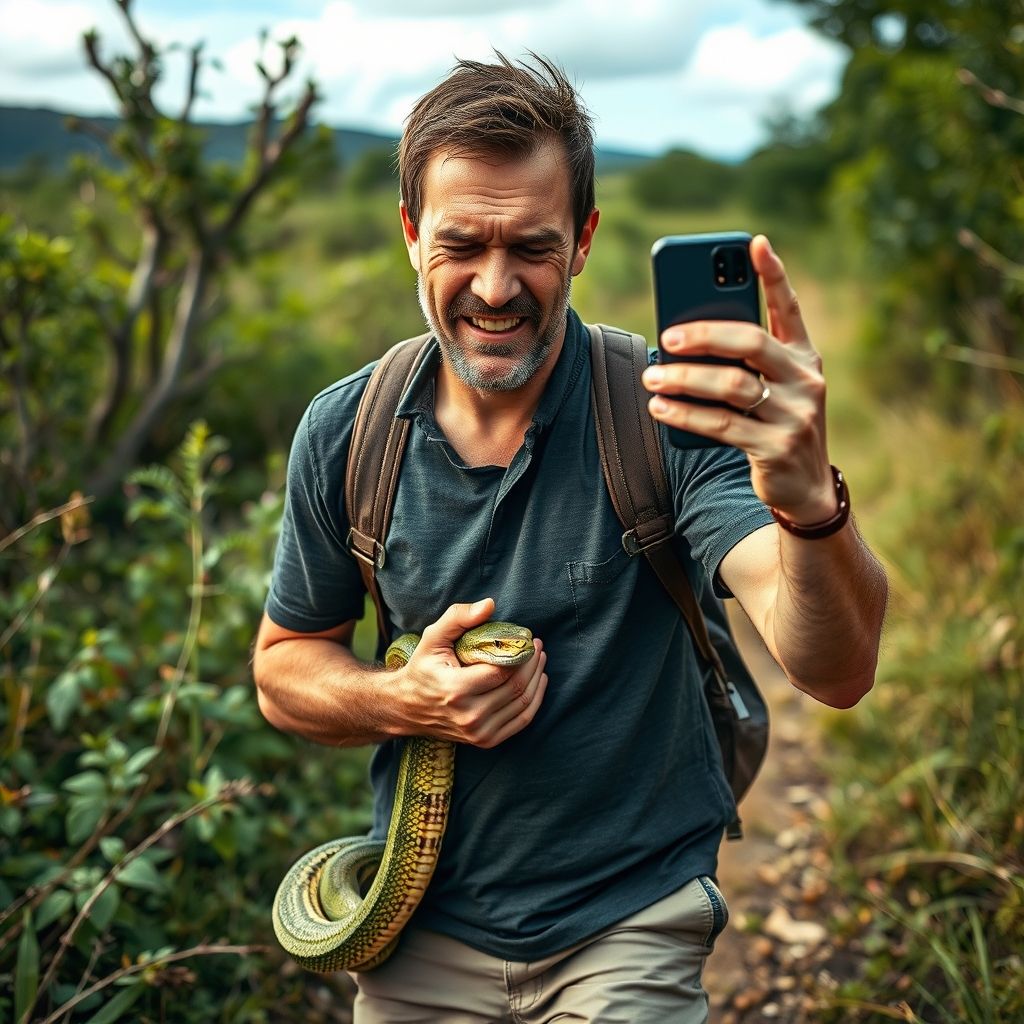 虽然遭遇了这种突如其来的危险,但男子并没有惊慌失措。他的第一反应并不是尖叫或四处求救,而是保持冷静,试图冷静分析自己的处境。在剧烈的疼痛中,他的直觉告诉他,必须记录下这一刻,于是他忍着剧痛,从口袋中掏出手机,拍下了被蛇咬伤的瞬间。这一举动让人不禁思考:在面对生死攸关的时刻,为什么他没有选择立即寻求帮助,而是决定先拍照?